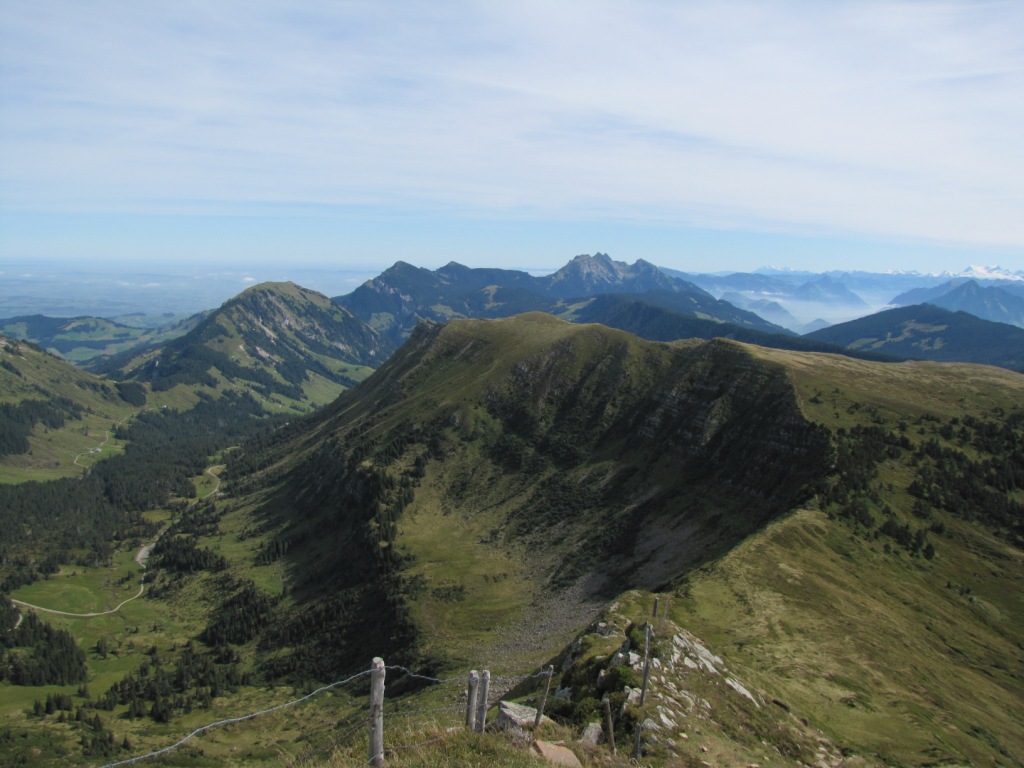 Breitbildfoto vom Kamm aus gesehen, Richtung Schwändiliflue und Schratteflue