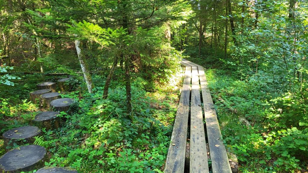 direkt neben dem Langmoos liegt der Moorwald. Ein Pfad geht auf die Besonderheit dieses Moorgebiets ein Datum 05.09.2025