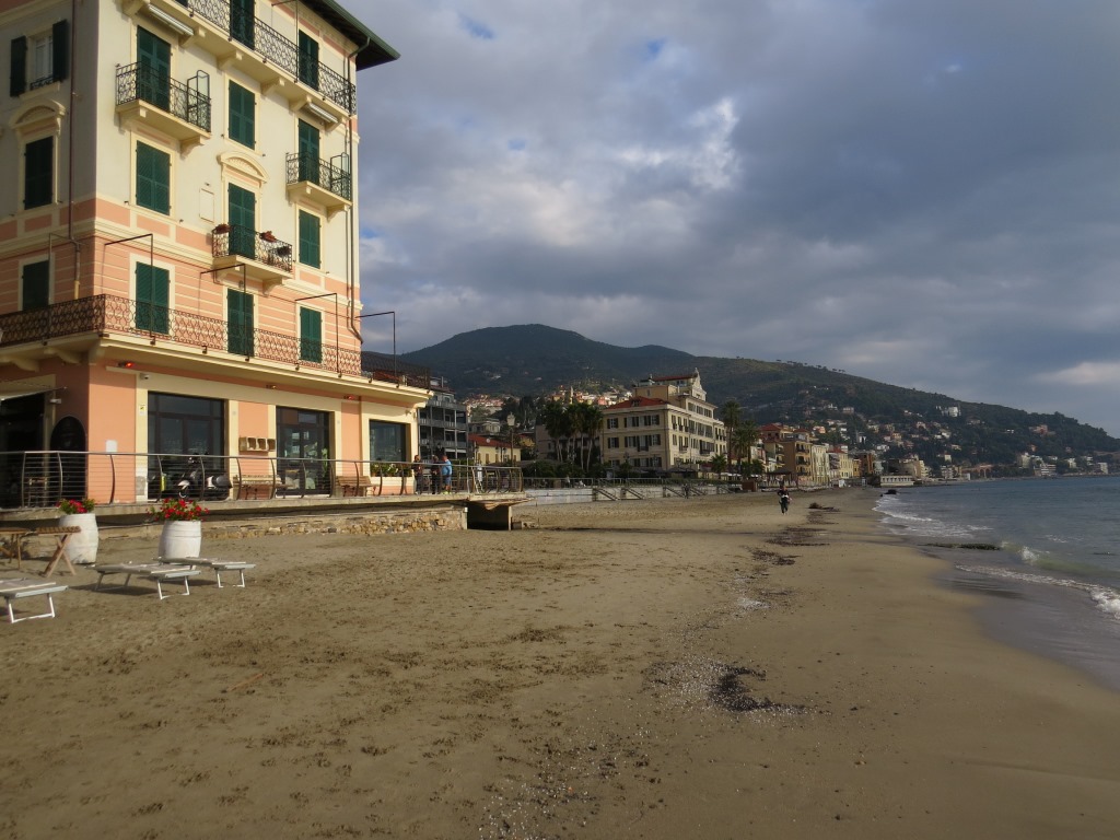 am Strand von Alassio starten wir die heutige Etappe die uns zuerst nach Andora führen wird