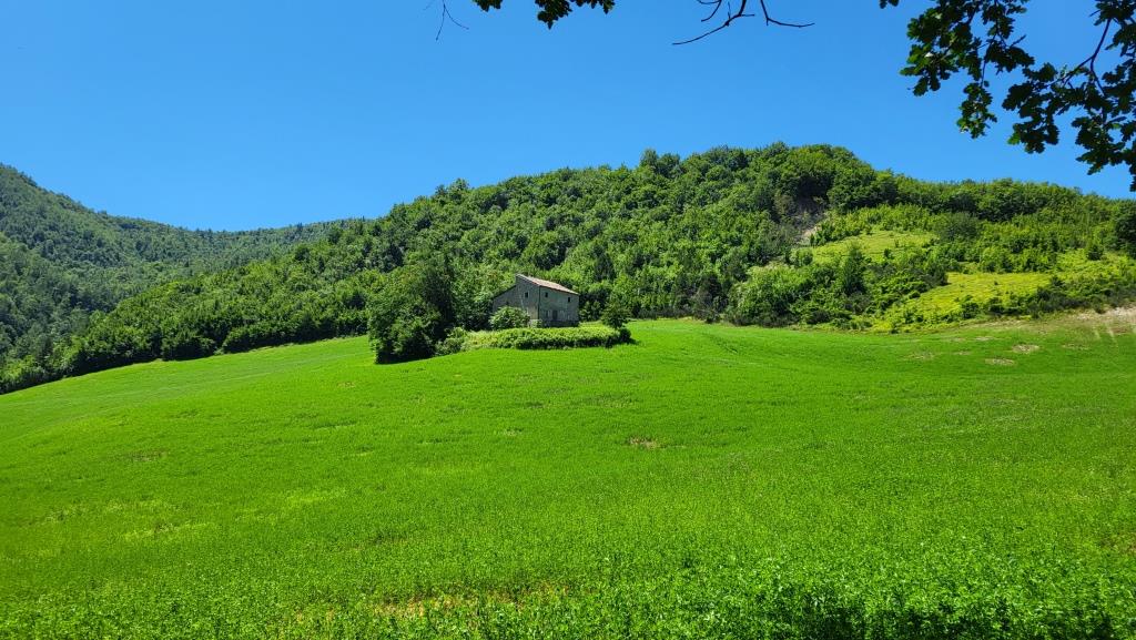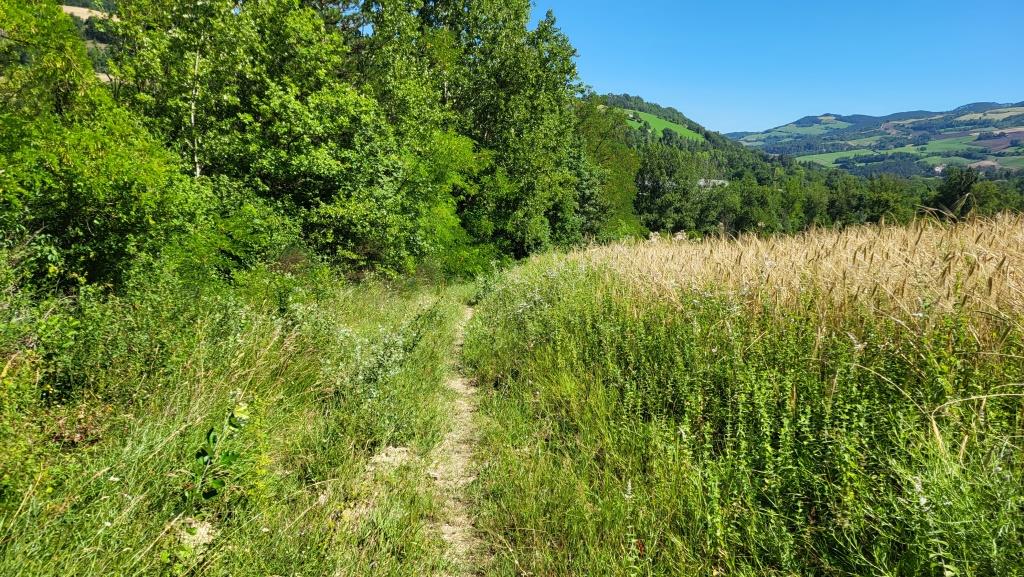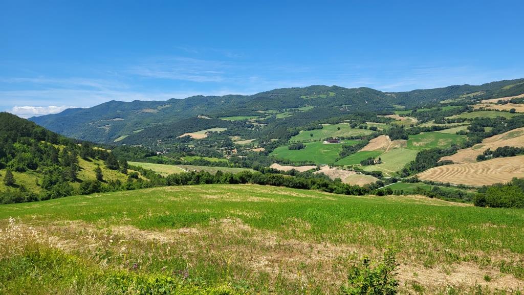 über eine grüne Hügelige Landschaft laufen wir weiter Richtung Portico di Romagna