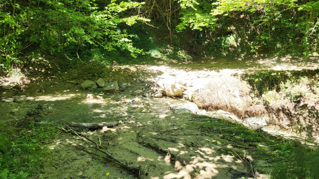 jetzt ein kleiner Rinnsal, beim Hochwasser 2023 wälzten sich hier gewaltige Wassermassen zu Tale