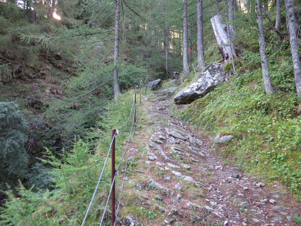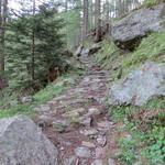 der historische Saumpfad, auf beiden Seiten von Steinen befestigt, ist mittlerweile breiter geworden Datum 03.04.2020