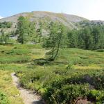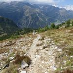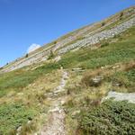 in fünf weit ausholende Serpentinen führt der immer noch einfache aber nun steile Bergpfad Richtung Seehorn Datum 03.04.2020