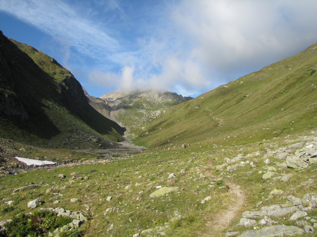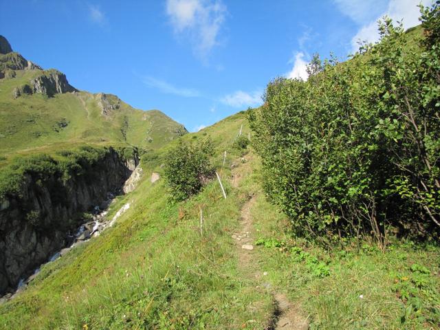 bei Lengtalstafel 2088 m.ü.M. rechts beim Wiesenhang, ist der Weg gut ersichtlich
