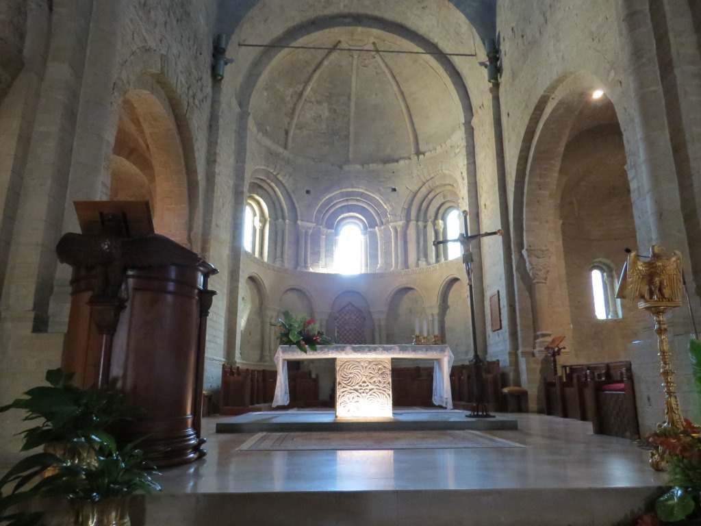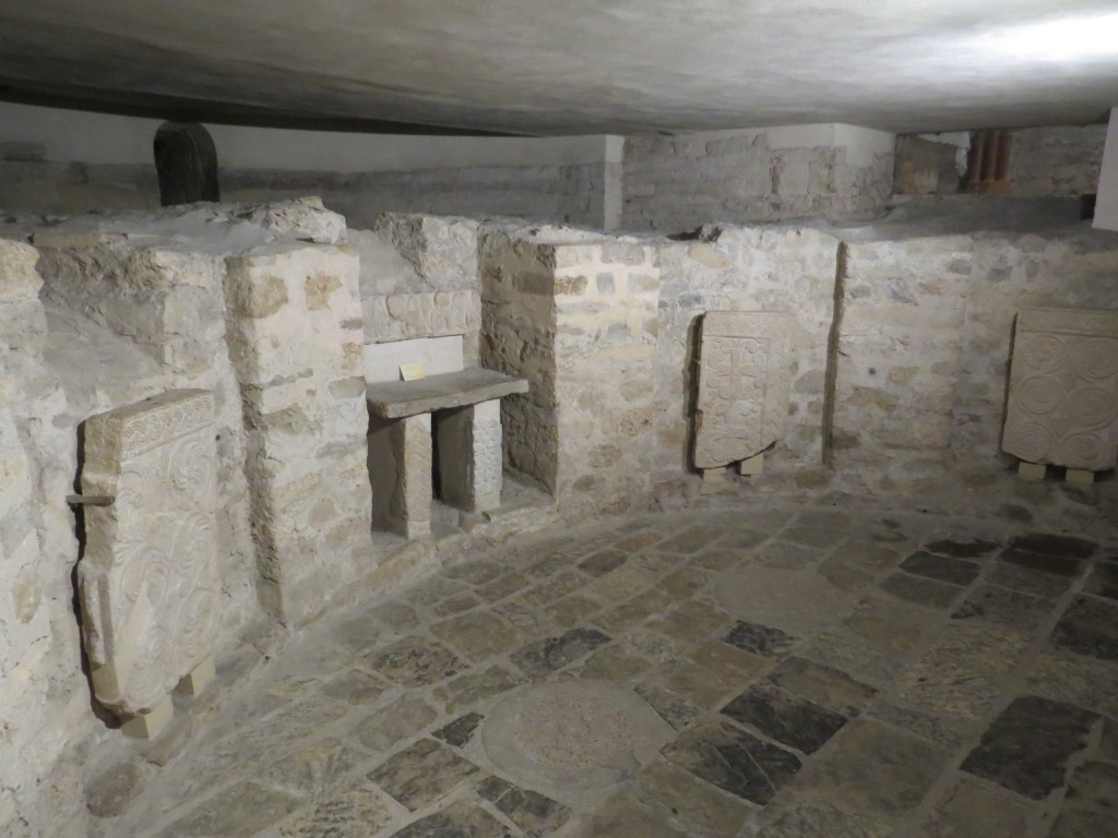unter de Apsis befindet sich eine vorromanische Hallenkrypta