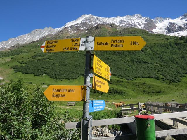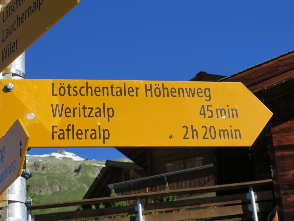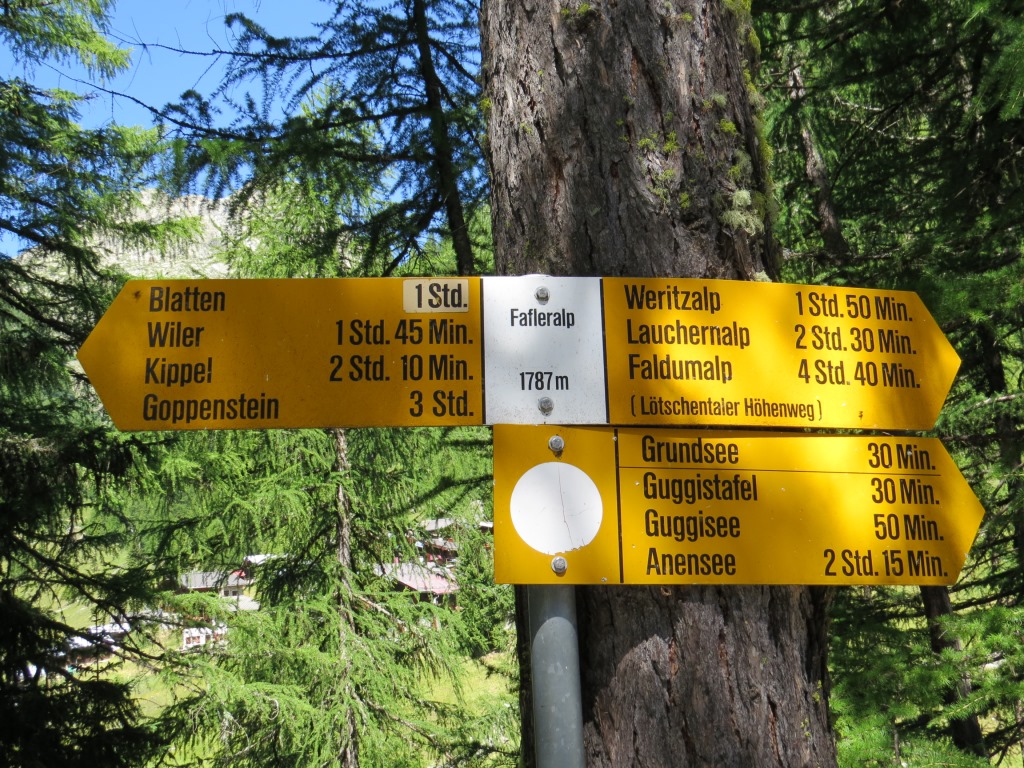 Wegweiser beim Hotel Fafleralp 1787 m.ü.M. unser nächstes Ziel ist die Anenhütte Datum 14.10.2015