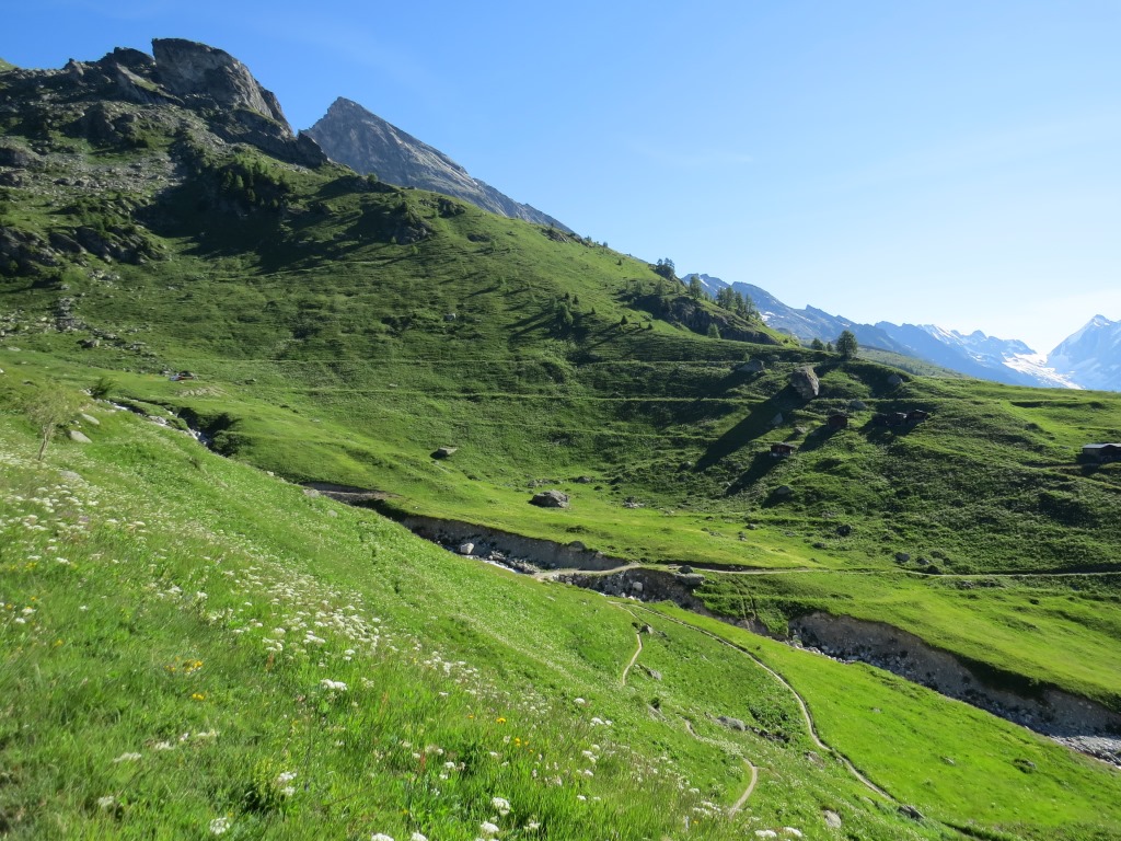 Blick zurück zur Lauchernalp. Gut ersichtlich in der oberen Bildmitte, der Restipass Datum 13.10.2015