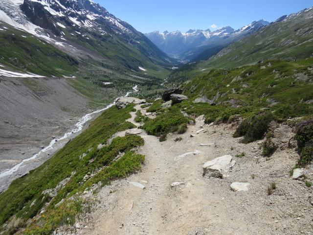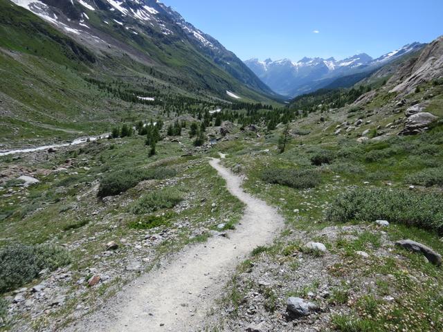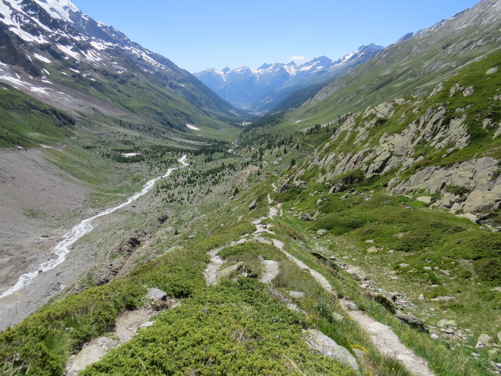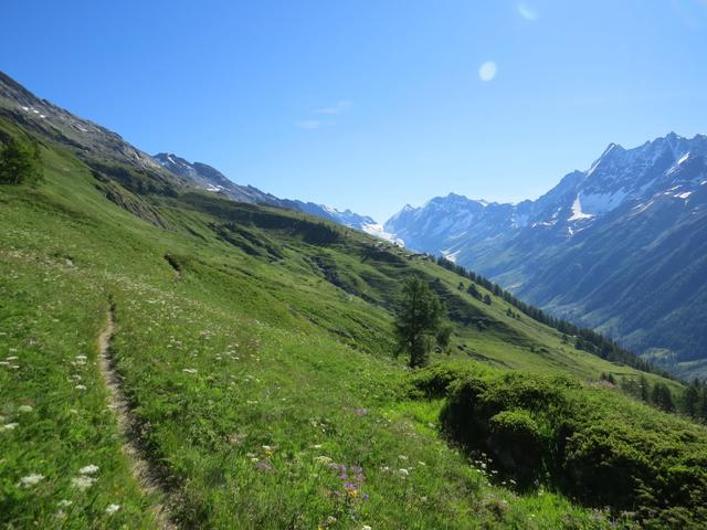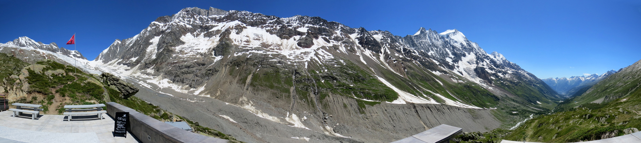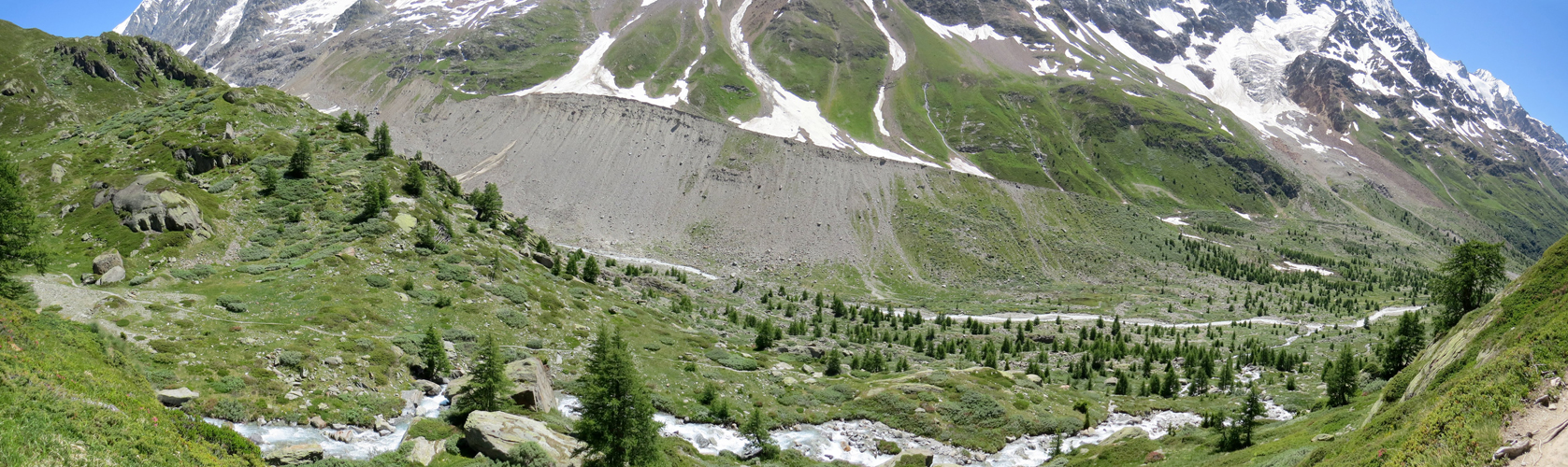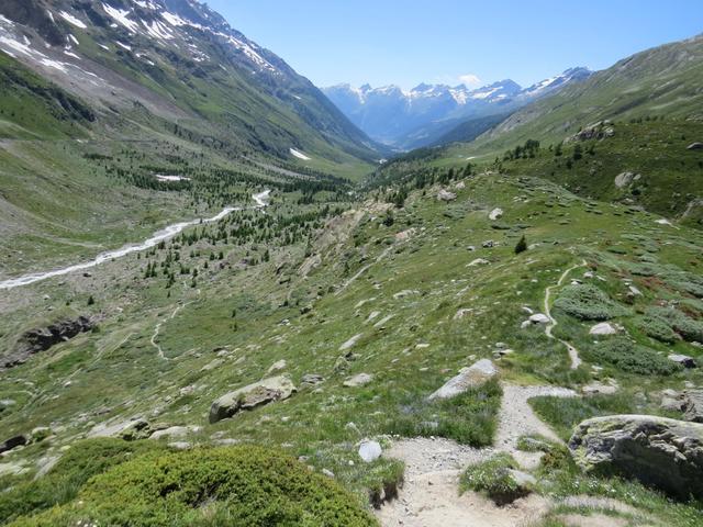 schönes Breitbildfoto mit Blick auf den Talgrund. Gut ersichtlich die Moräne. So hoch war früher der Langgletscher Datum 23.02.2017
