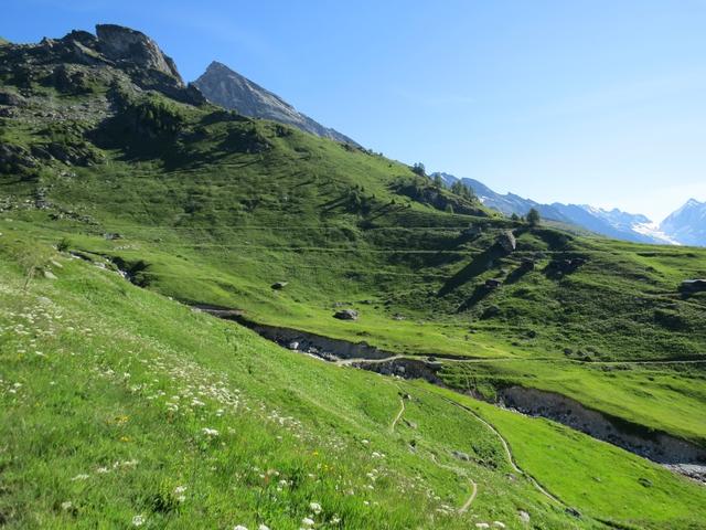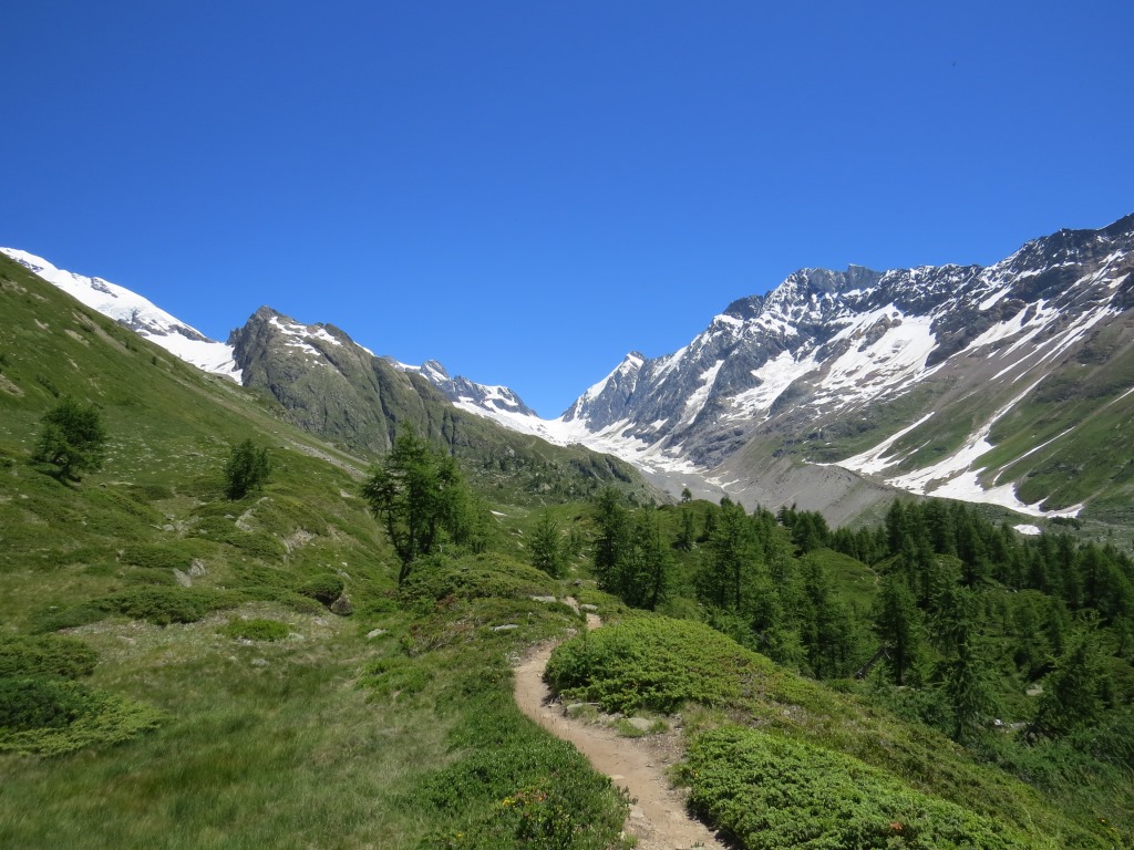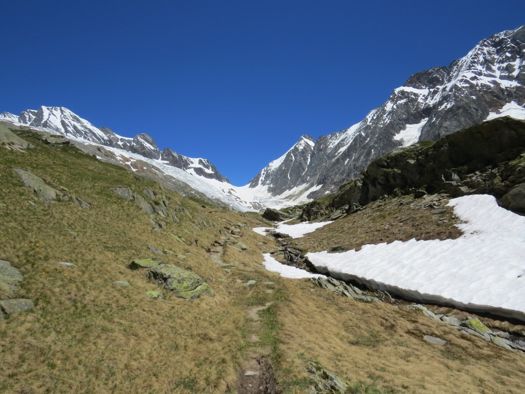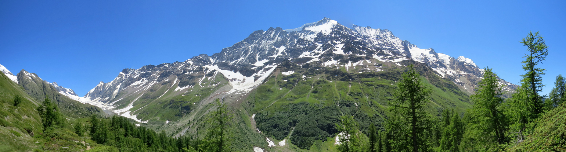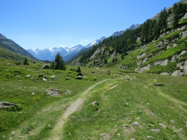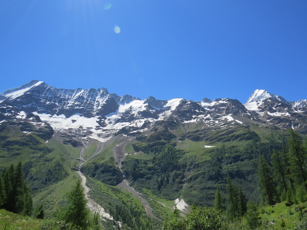 schönes Breitbildfoto mit Blick auf den Talgrund. Gut ersichtlich die Moräne. So hoch war früher der Langgletscher Datum 23.02.2017