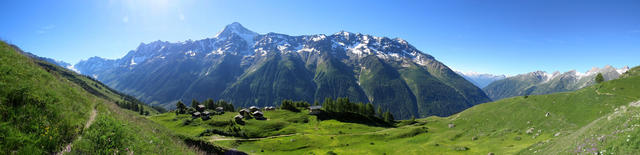 Blick von Honblatta 1860 m.ü.M. zur gegenüberliegender Talseite mit Schinhorn, Breithorn und Bietschhorn Datum 14.10.2015