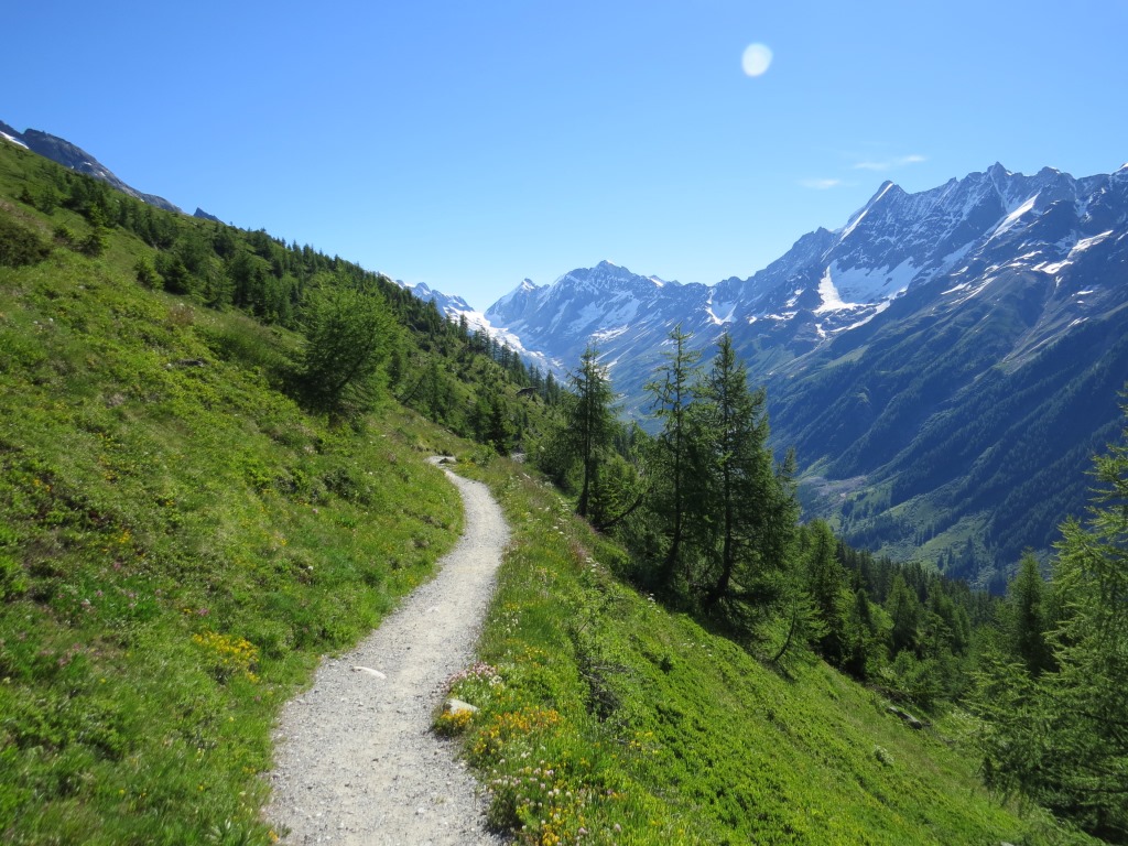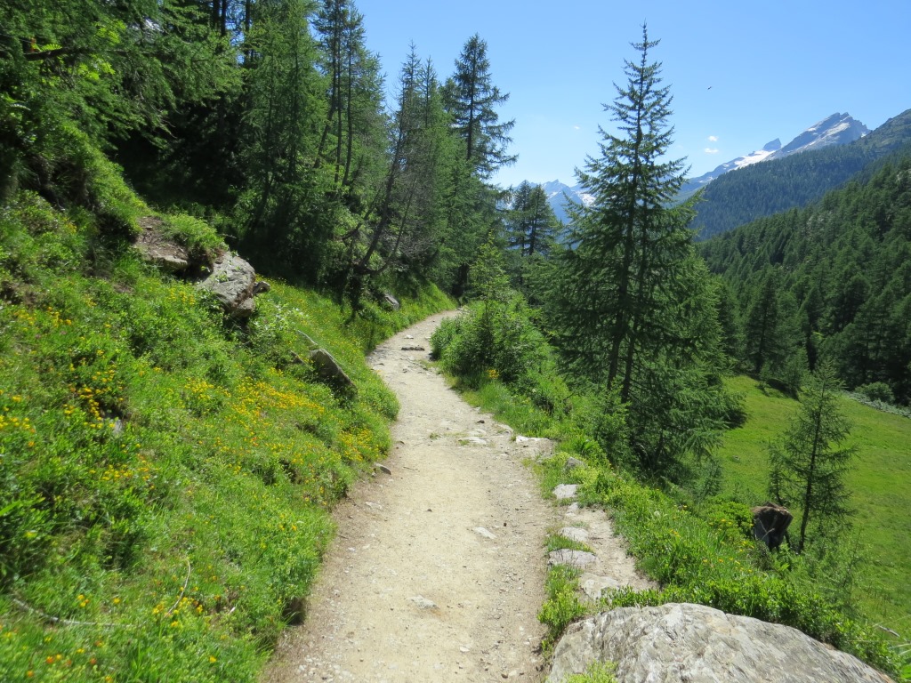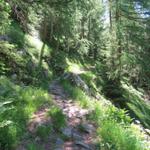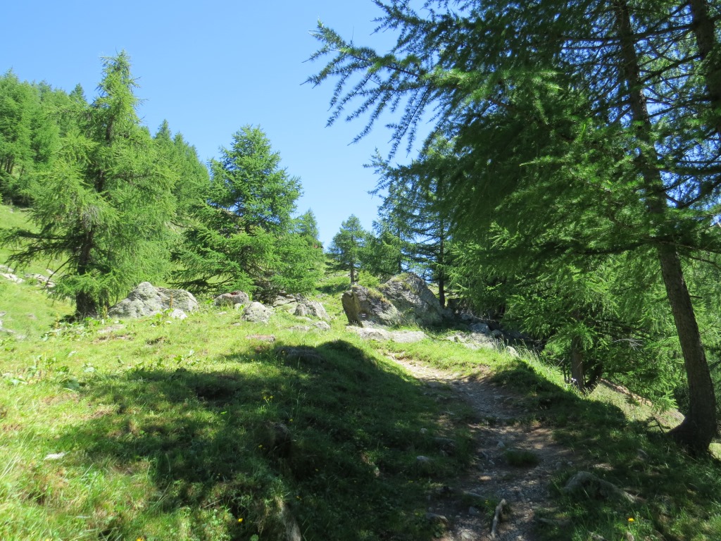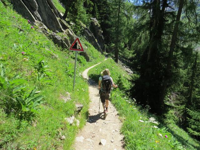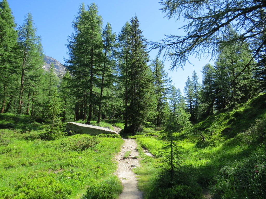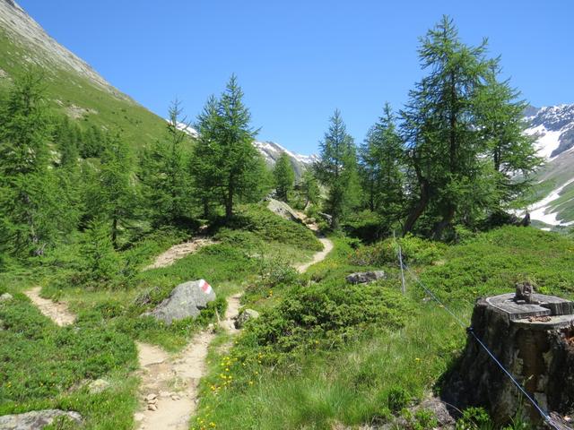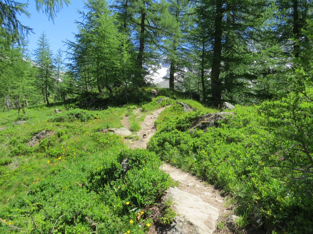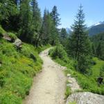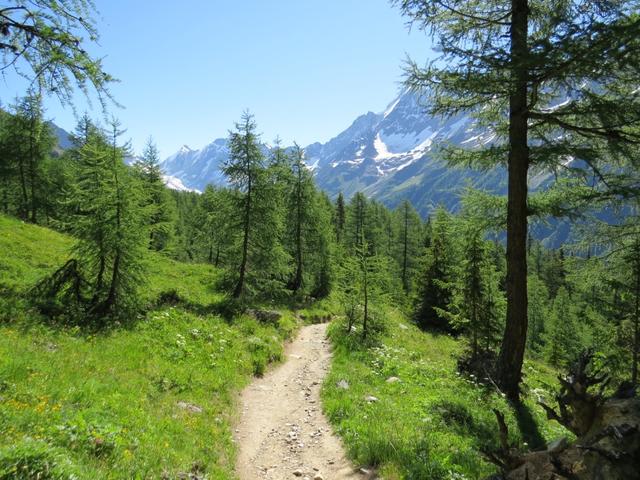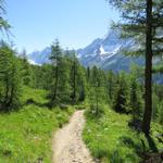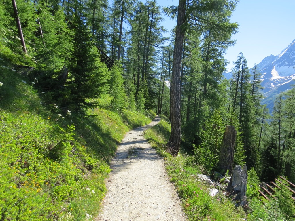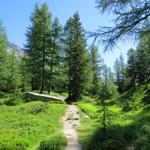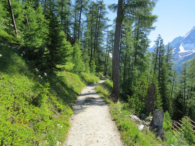 der Pfad führt einem oberhalb der Gletscherflue durch einen schönen Lärchenwald Datum 14.10.2015