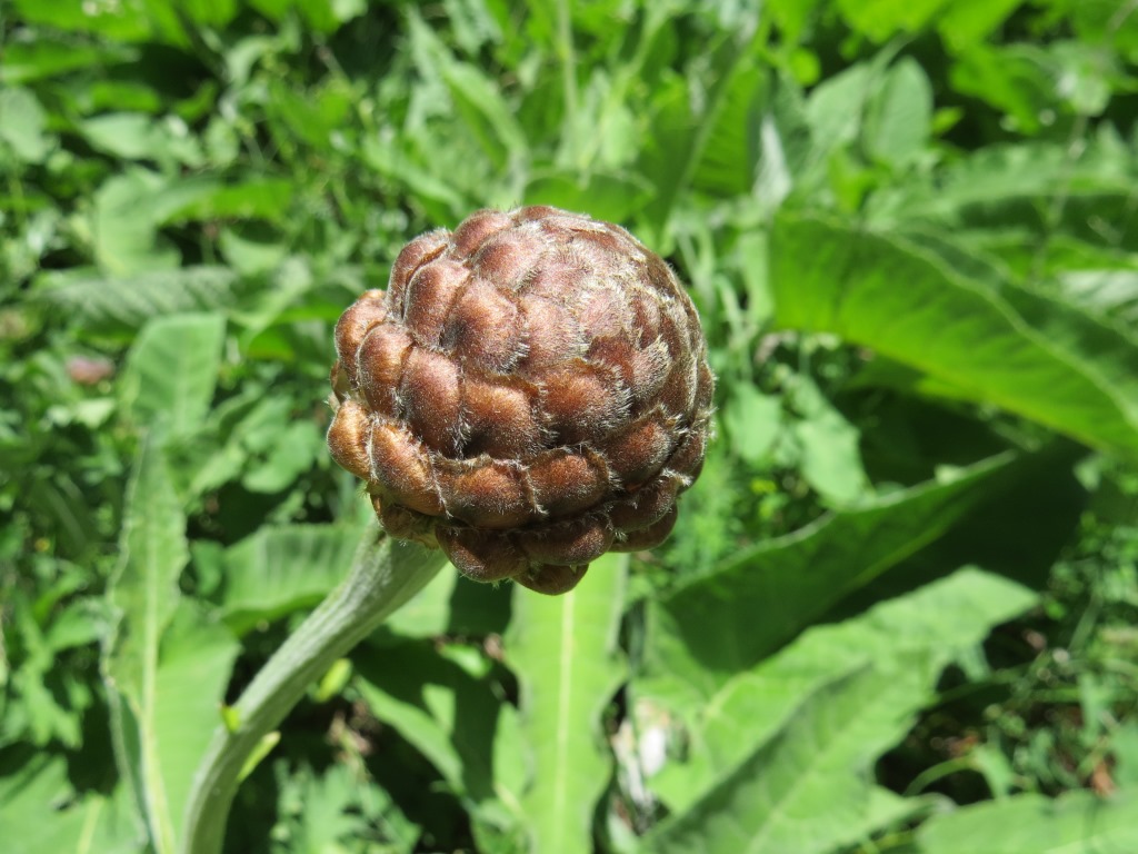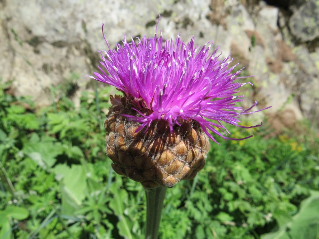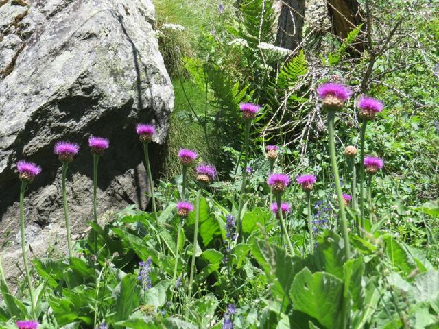 der ganze Hang ist übersät von der Rhätischen Berg- Distel (Carduus defloratus ssp. rhaeticus) Datum 14.10.2015