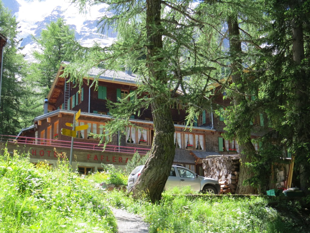 mitten im Wald taucht das Hotel Fafleralp auf Datum 14.10.2015