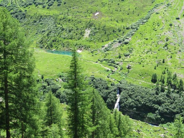 Blick ins Tal der noch jungen Lonza und zum Grundsee. Tief hat sich die Lonza in eine Schlucht gegraben Datum 15.10.2015