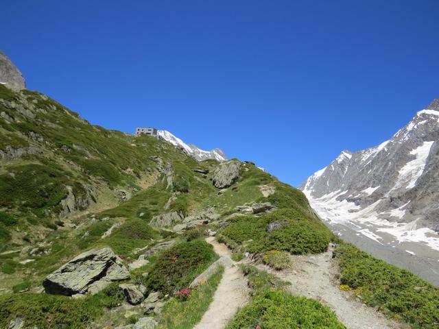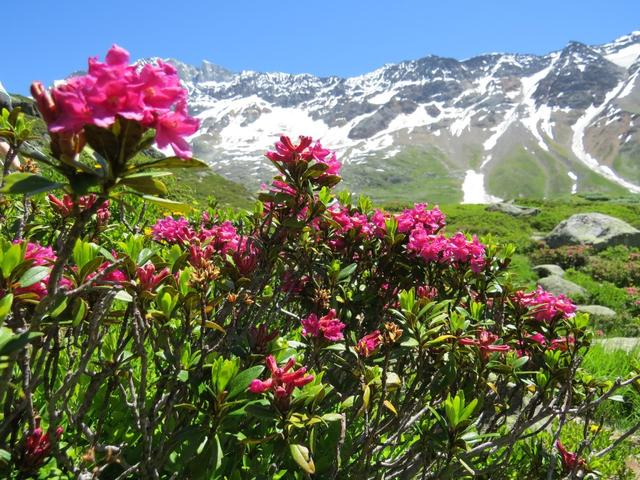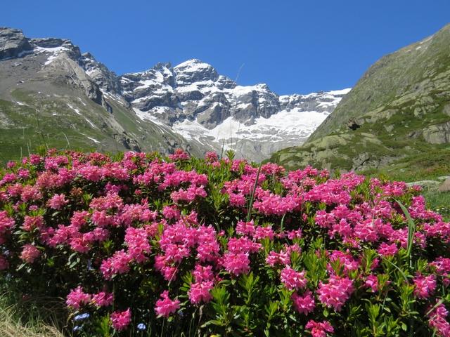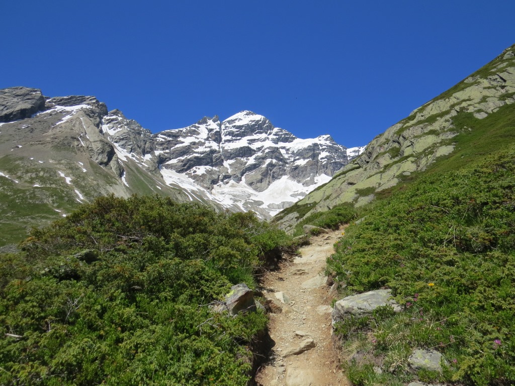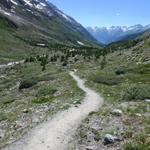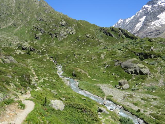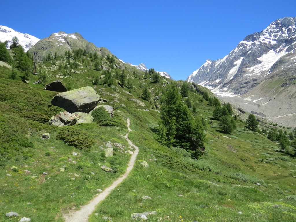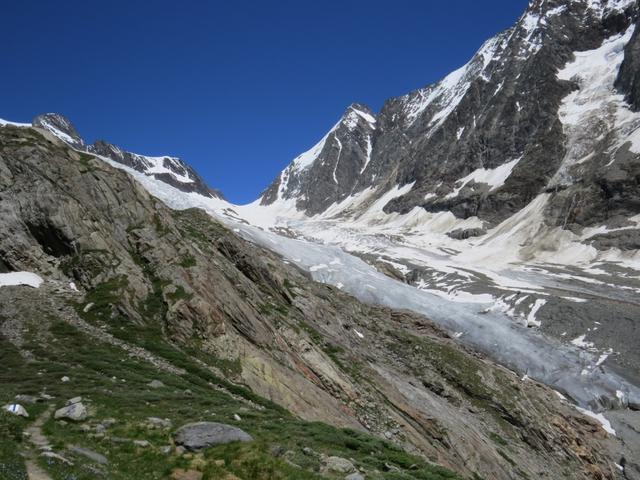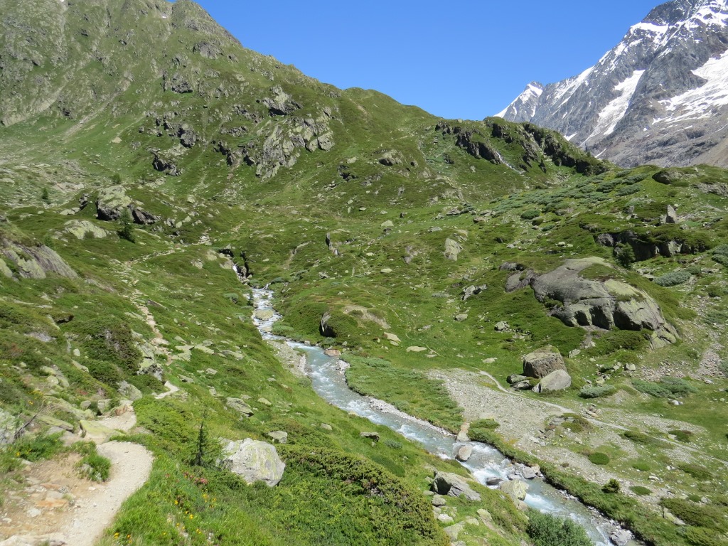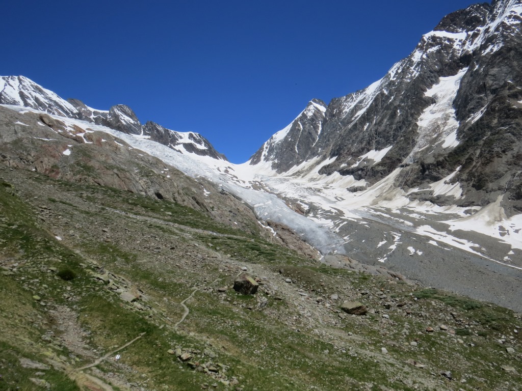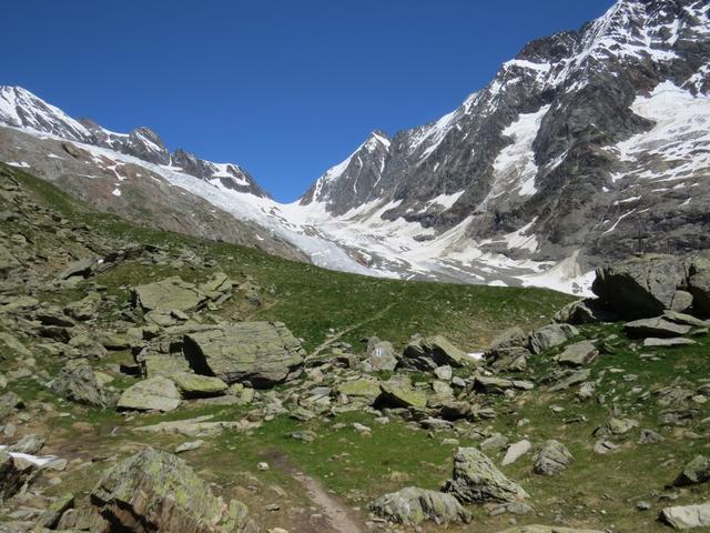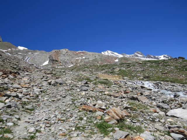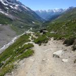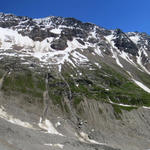 wir stehen nun beim Langgletscher. Eine Wegvariante führt nun hinunter zum Gletschervorfeld Datum 16.10.2015