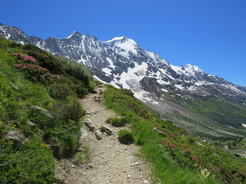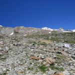der Bergpfad steigt nun steil aufwärts. Blick zum Breithorn Datum 15.10.2015