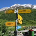 Wegweiser bei der kleinen Alpsiedlung von Weritzalp 2099 m.ü.M. Datum 18.10.2015