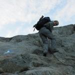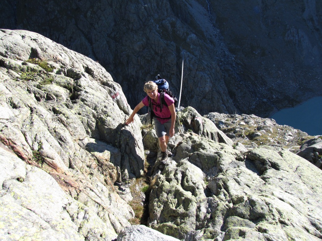 Mäusi bei der Felswand. Rassig geht es mit Hilfe der Ketten abwärts Datum 02.01.2012
