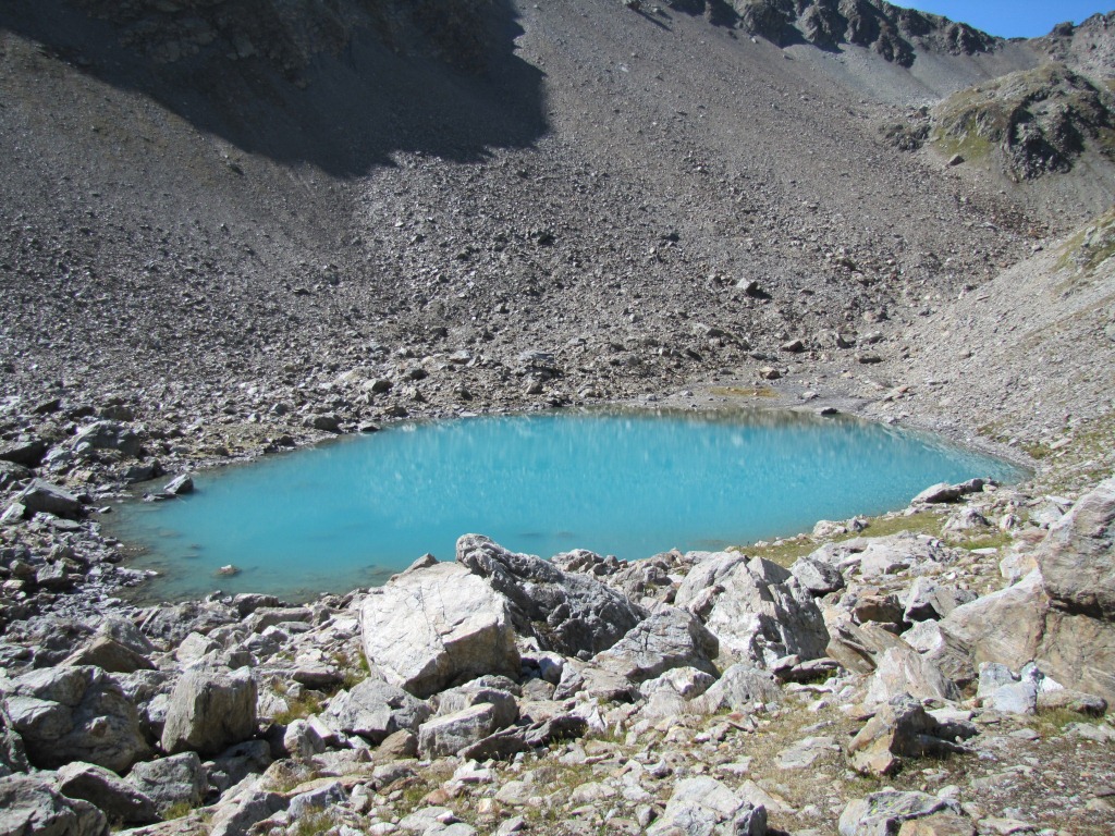 Geröll und Schutt bedecken das ganze Trifttälli. Einziger Lichtblick der stahlblaue Tälliseeli Datum 03.01.2012