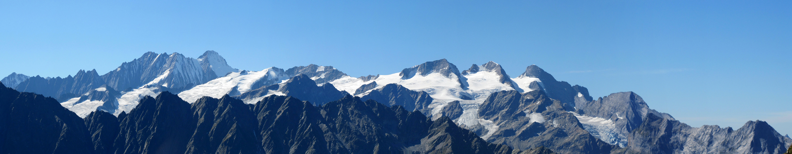 Breitbildfoto vom Gwächtenhorn, Chilchistock, Steinhüshorn, Triftgletscher, Furtwangsattel und Mährenhorn Datum 03.02.2017
