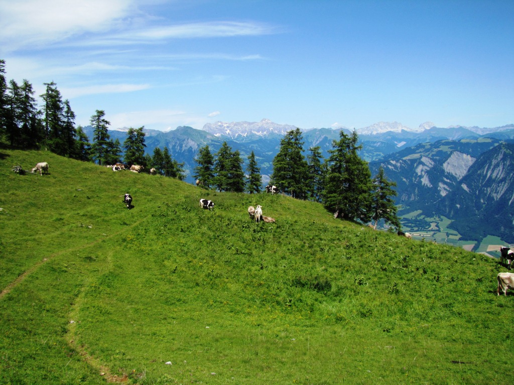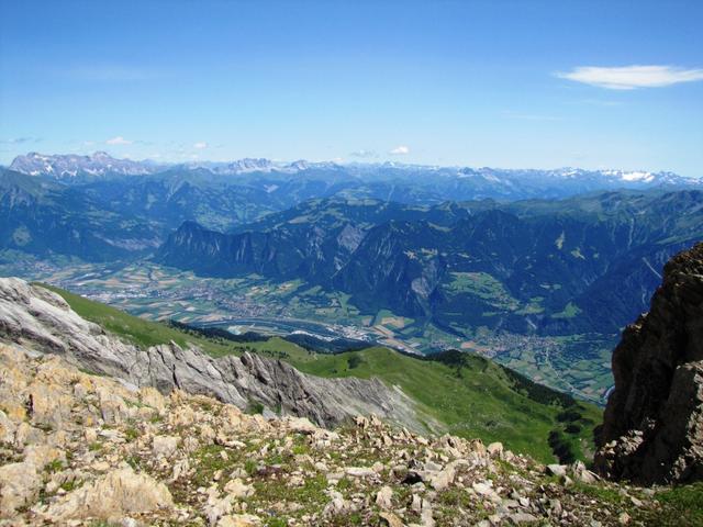 Tiefblick ins Rheintal mit Cyprianspitz. Dort oben waren wir auch schon Datum 24.03.2013