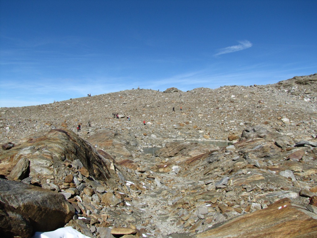 über alte Moränenhügel geht es weiter aufwärts Punkt 3004 m.ü.M. Datum 23.01.2014