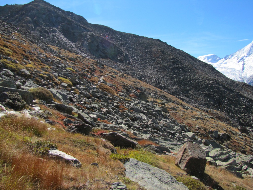 Blick hinauf zum Zwischbergenpass, der höchste wanderbare Pass der Schweiz Datum 26.01.2014