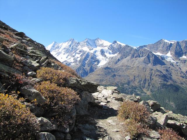 was für eine Aussicht wärend dem Wandern. Wir haben die ganze Mischabelgruppe vor unseren Augen Datum 26.01.2014