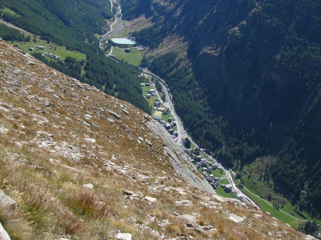 fast senkrecht geht es hier runter. Tiefblick ins Saas Tal und Saas-Almagell Datum 26.01.2014