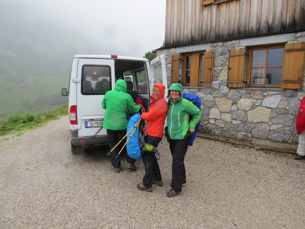 der Alpentaxi bringt uns nach Scharnitz.Die Überquerung vom Schlauchkarsattel muss wegen dem schlechten Wetter abgesagt werden