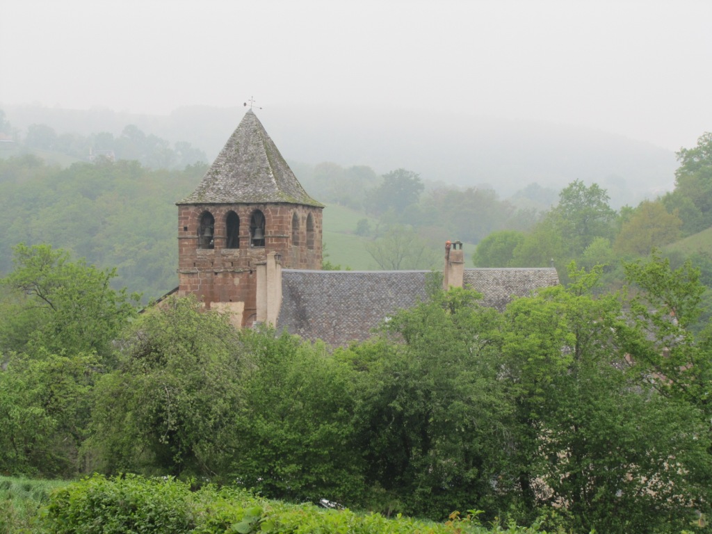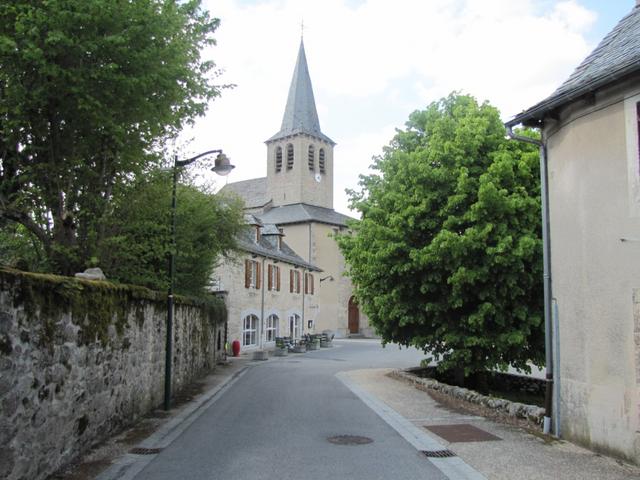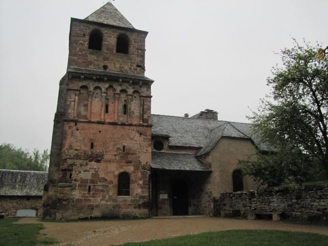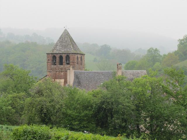 vor uns taucht die Kirche St.Pierre in Bessuéjouls auf Datum 15.06.2010