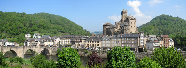 Breitbildfoto von Estaing mit gotischer Brücke über den Lot Datum 14.11.2016