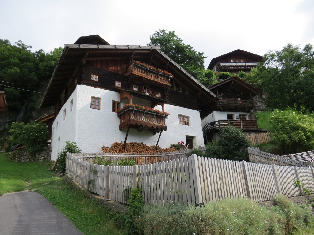 wir verlassen Stuls 1317 m.ü.M. und blicken hinunter nach St.Leonhard, unser erstes Tagesziel Datum 03.08.2016