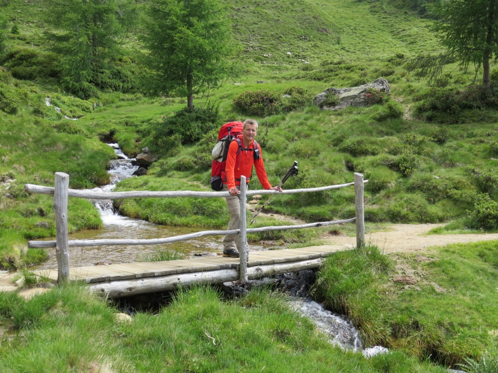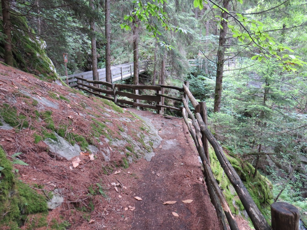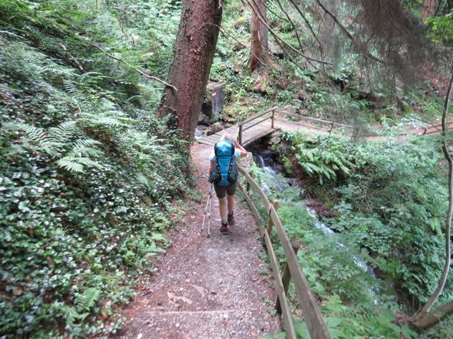 über eine Eisenbrücke überqueren wir den Fartleisbach der sich eine tiefe Schlucht gegraben hat Datum 03.08.2016