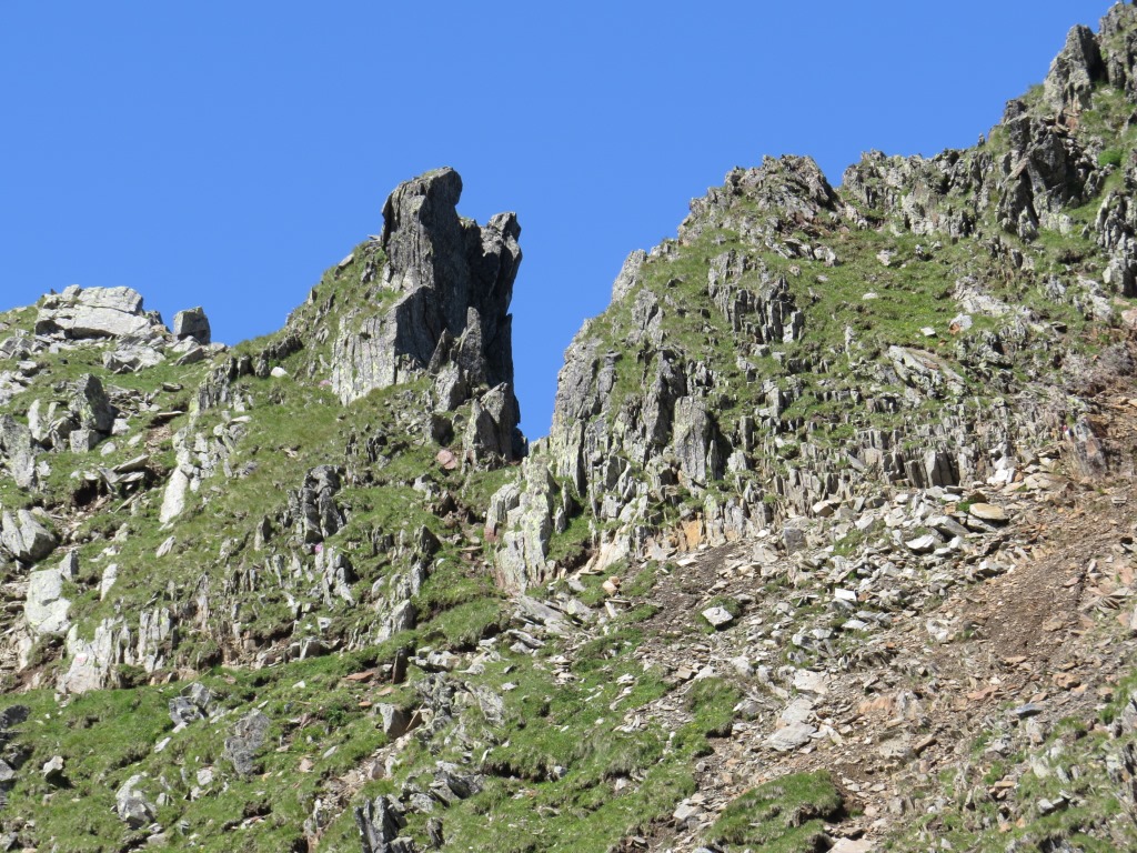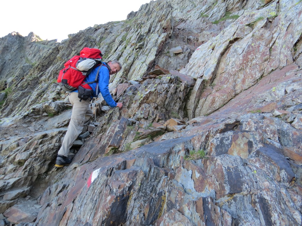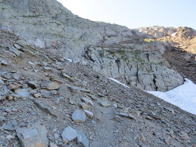 der Weg zieht nun nach links zur Oberen Scharte. Der Pfad ist auf der ganzen Länge nicht gesichert