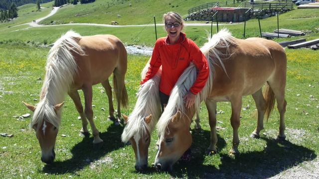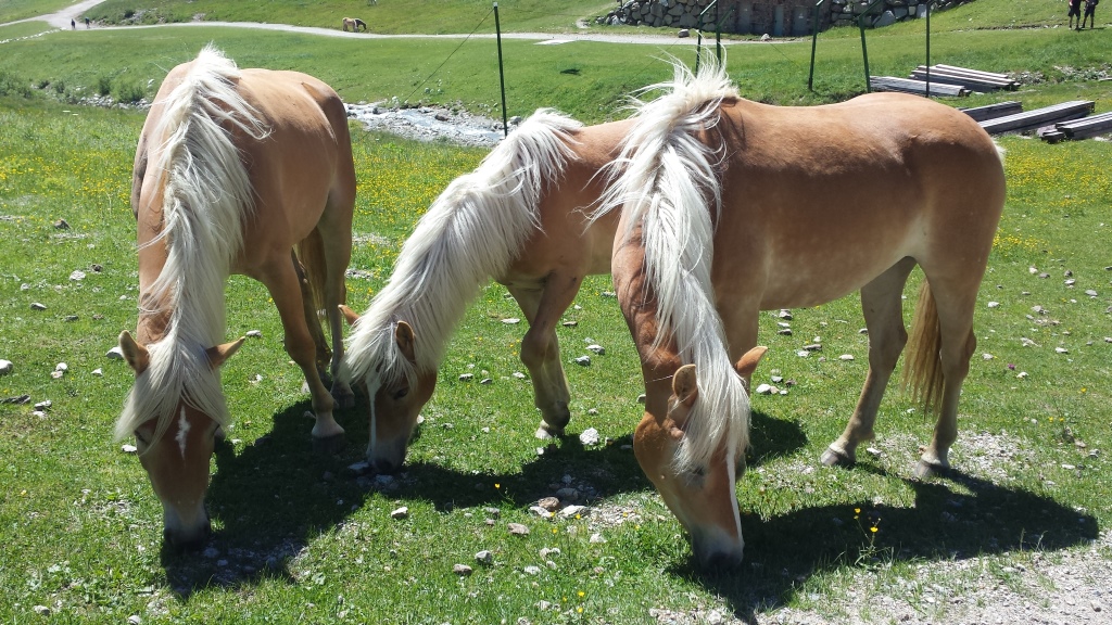 auf der ganzen Alp laufen die Haflinger Pferde frei herum