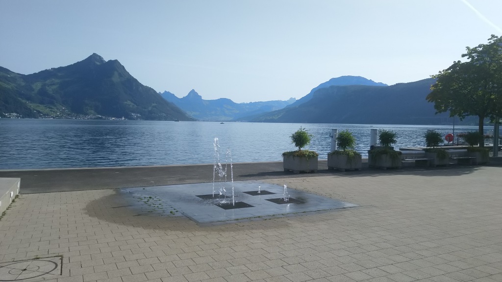 der Blick auf den Vierwaldstättersee hier mit Pilatus im Hintergrund, bleibt weiterhin sehr schön