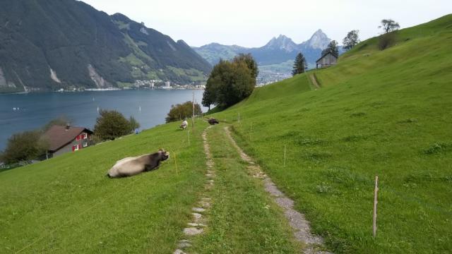 am Bauernhof Miten vorbei, wandern wir nun leicht abwärts Richtung Rütli