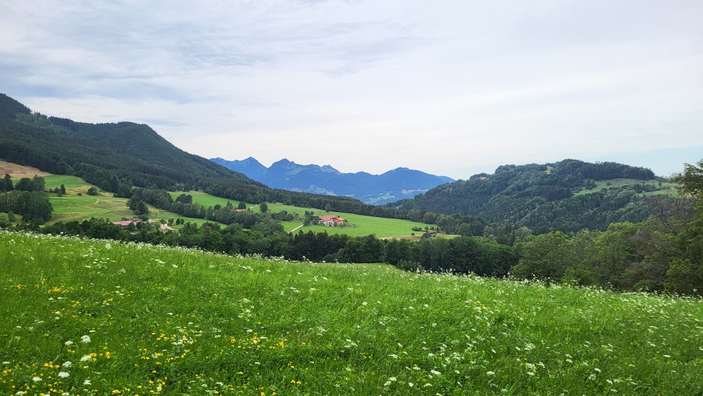 während dem Wandern, bestaunen wir die traumhafte Aussicht auf die Seenplatte um den Chiemsee