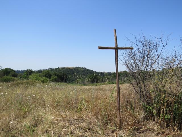 über ausgetrockene Felder erreichen wir eine Wegkreuzung