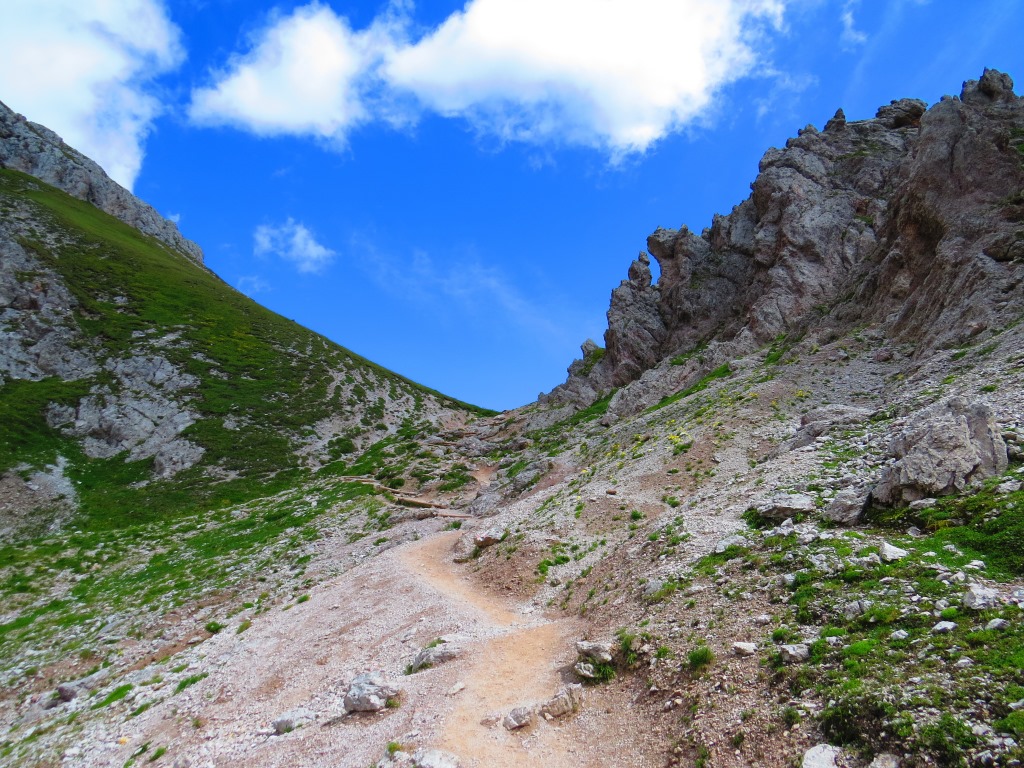am Fusse des Zendleser Kofel geht es über einen schönen Höhenweg weiter zum Kreuzkofeljoch