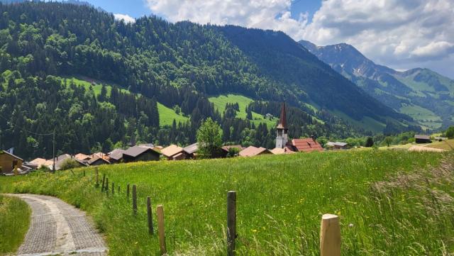 wir erreichen das heutige Etappenziel Jaun, einziges deutschsprachiges Dorf im Greyerzbezirk