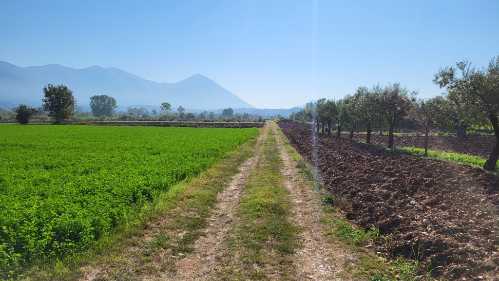 die Bergkette des Parco Regionale del Matese ist am Horizont gut ersichtlich. Heute geht am Fusse dieser Bergkette Datum 22.11.2023