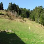 beim Wegweiser auf der Elisalp, bogen wir rechts ab Richtung Streuberg 1253 m.ü.M.