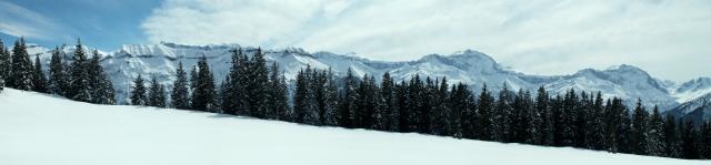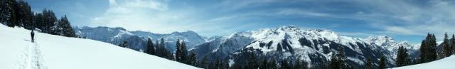 Breitbildfoto mit Vorab, Kärpf und Glärnisch