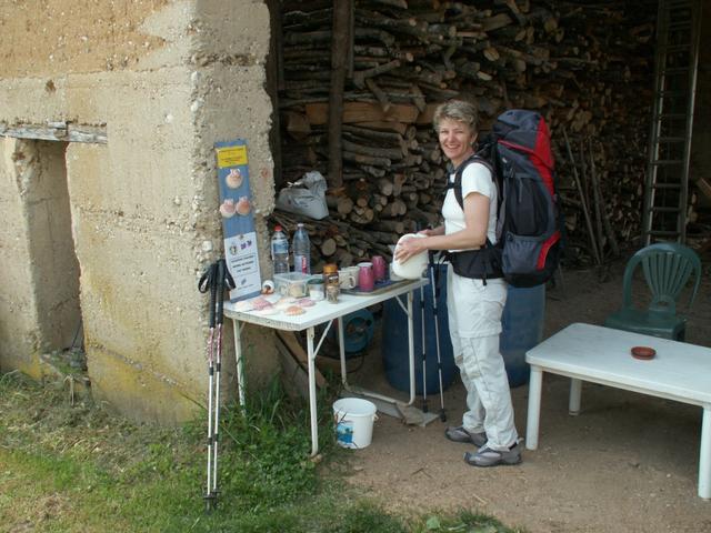 in einem Stall können Pilger einen Kaffee zu sich nehmen