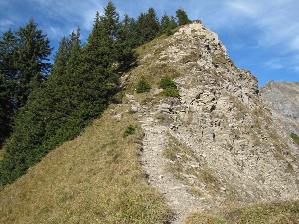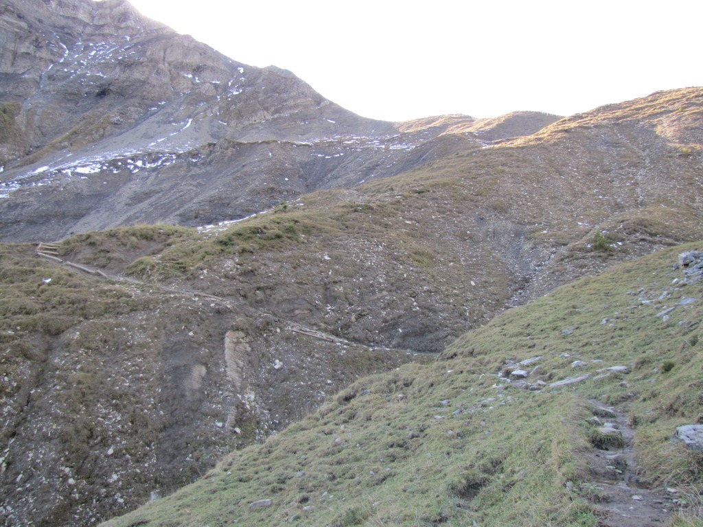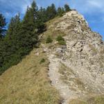 der Bergpfad führt weiter an der Abbruchkante entlang aufwärts