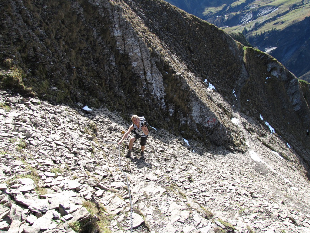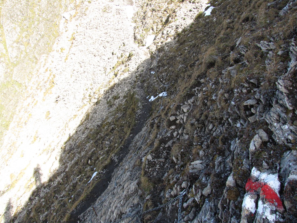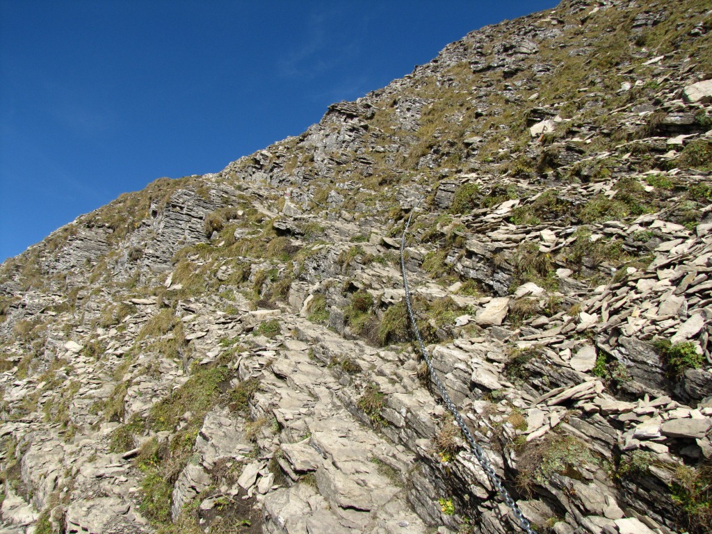 dann weiter seitwärts am Berghang entlang, (mit Ketten gesichert) aufwärts