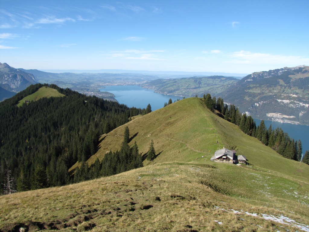 Blick abwärts zum Mäusi und zum Rengglipass