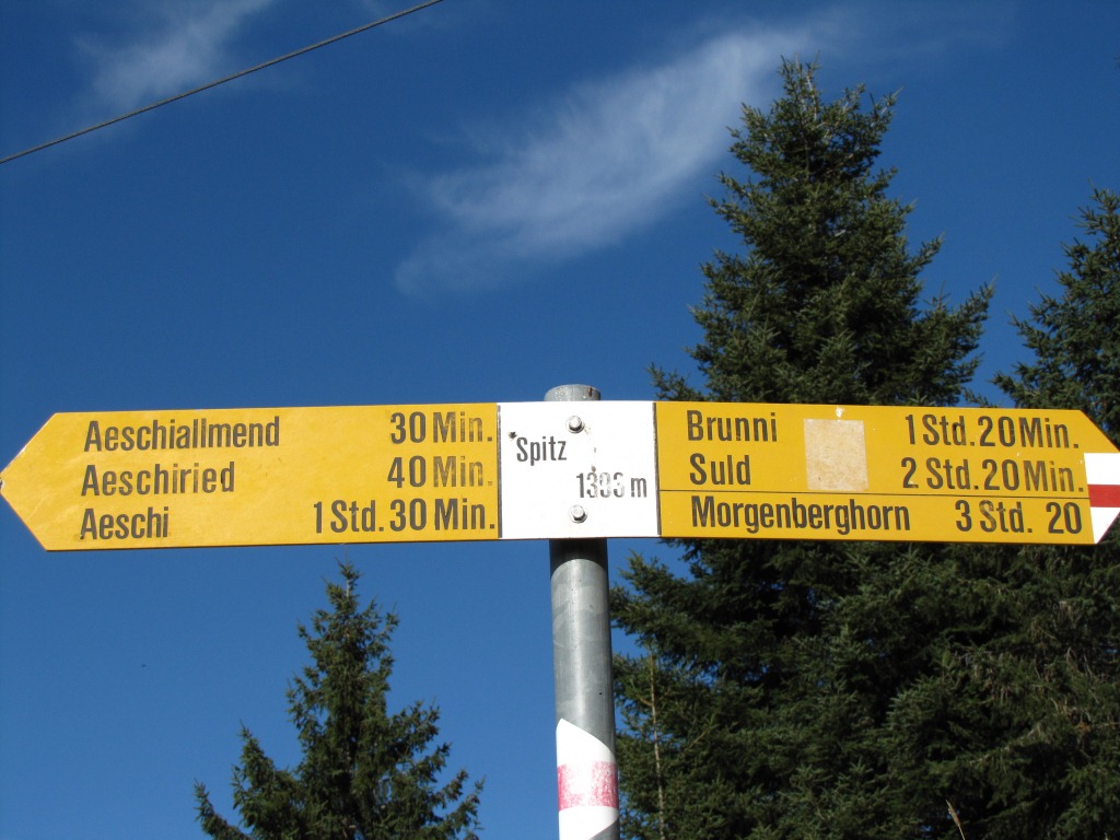 Wegweiser bei Aeschiallmend 1108 m.ü.M.